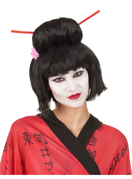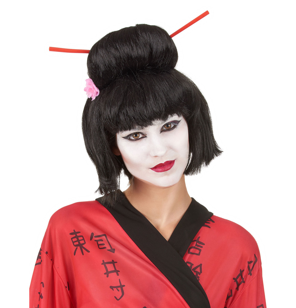Perruque noire de Geisha avec baguette idéal pour compléter votre déguisement !