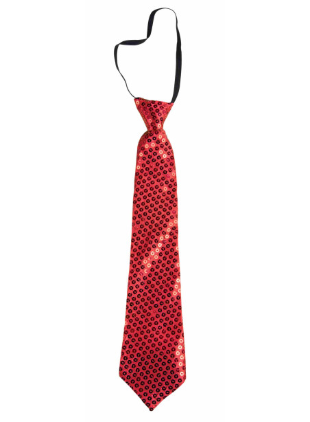 Cravate à sequins avec élastique couleur rouge, idéale pour compléter un costume disco !