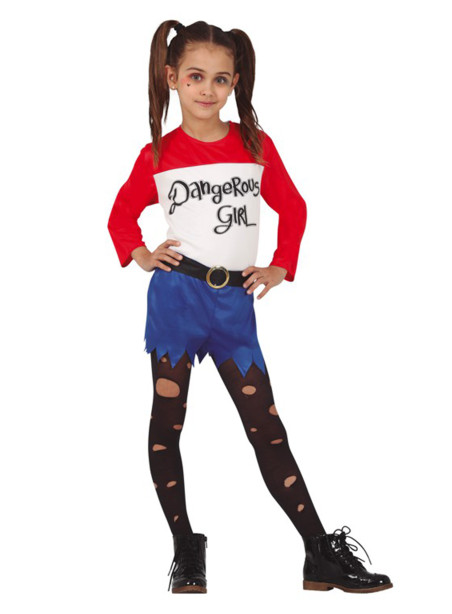 Déguisement super-héros Harley Quinn pour fille incluant le haut et le short avec ceinture !