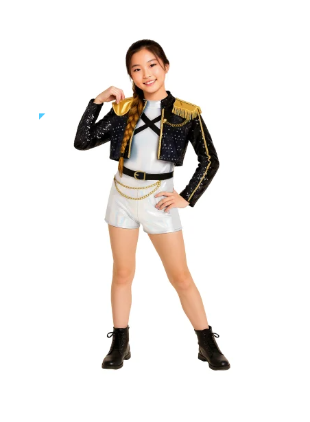 Déguisement KPOP démon hunter incluant la veste, le t-shirt et la jupe.