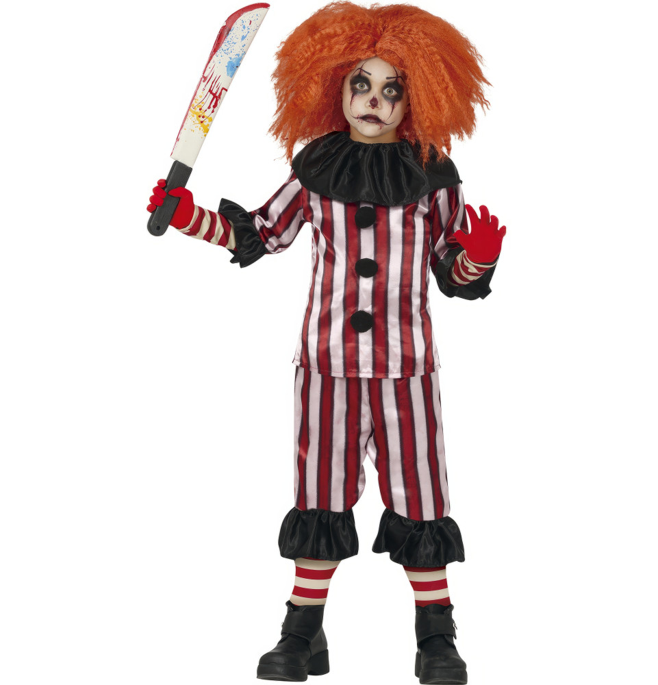 Déguisement clown tueur rouge garçon composé d'une chemise, un pantalon et une collerette !