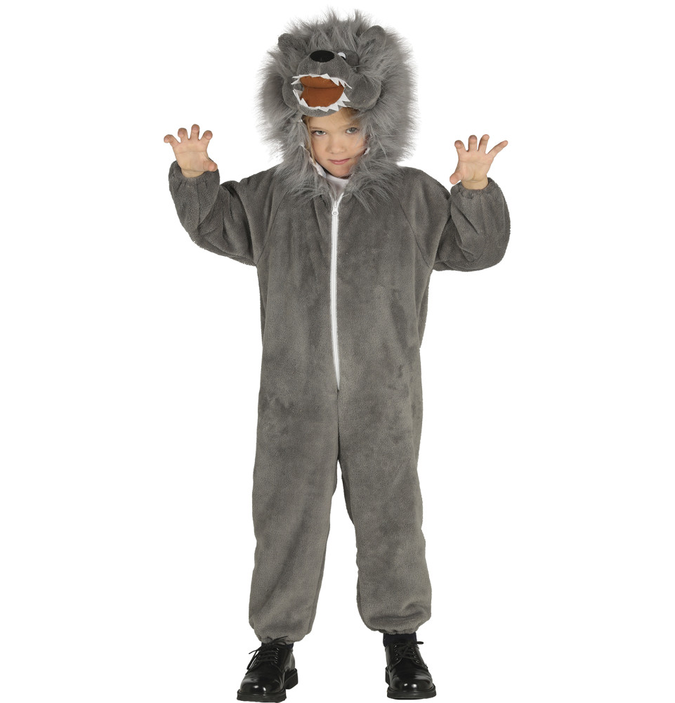 Déguisement loup pour garçon composé d'une combinaison avec capuche et queue !