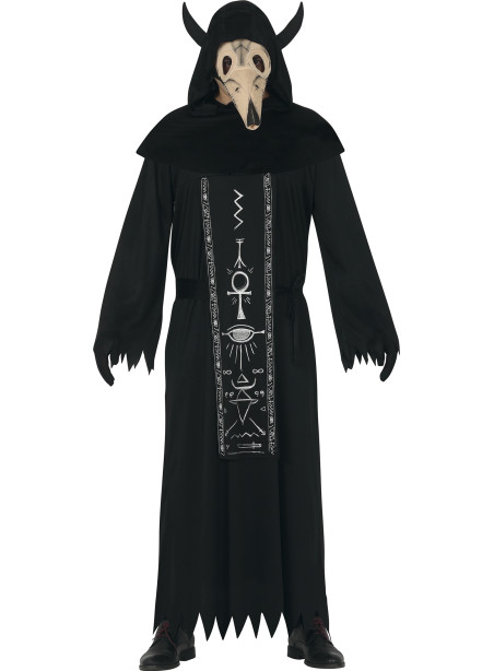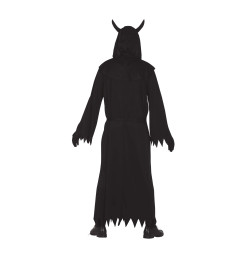 Déguisement de satanique pour homme composé d'une toge avec capuche, une ceinture avec cornes et d'un masque !