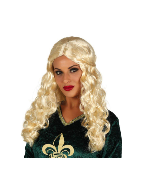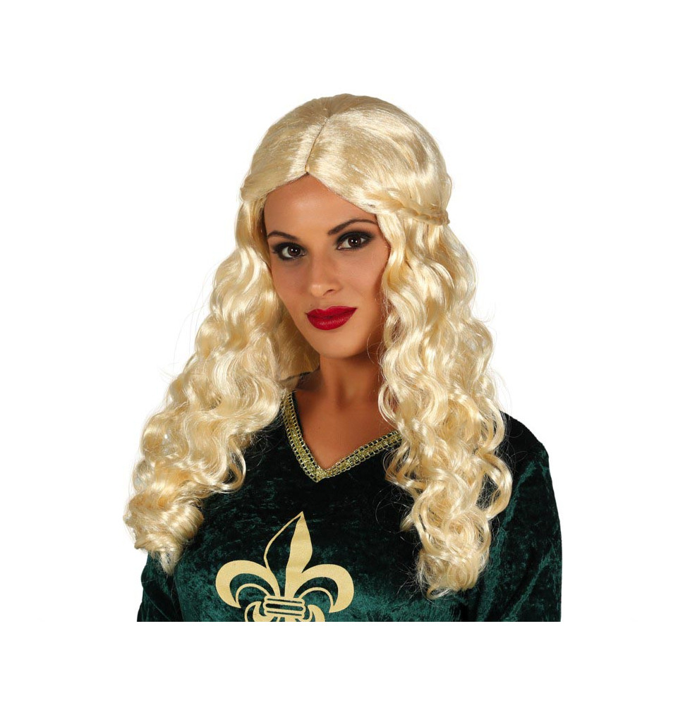 Perruque mi-longue ondulée blonde avec tresse