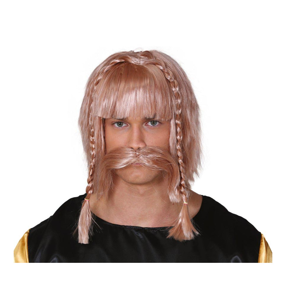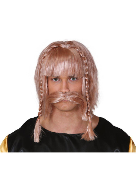 Perruque homme viking avec moustache, idéale pour compléter un déguisement d'Astérix !