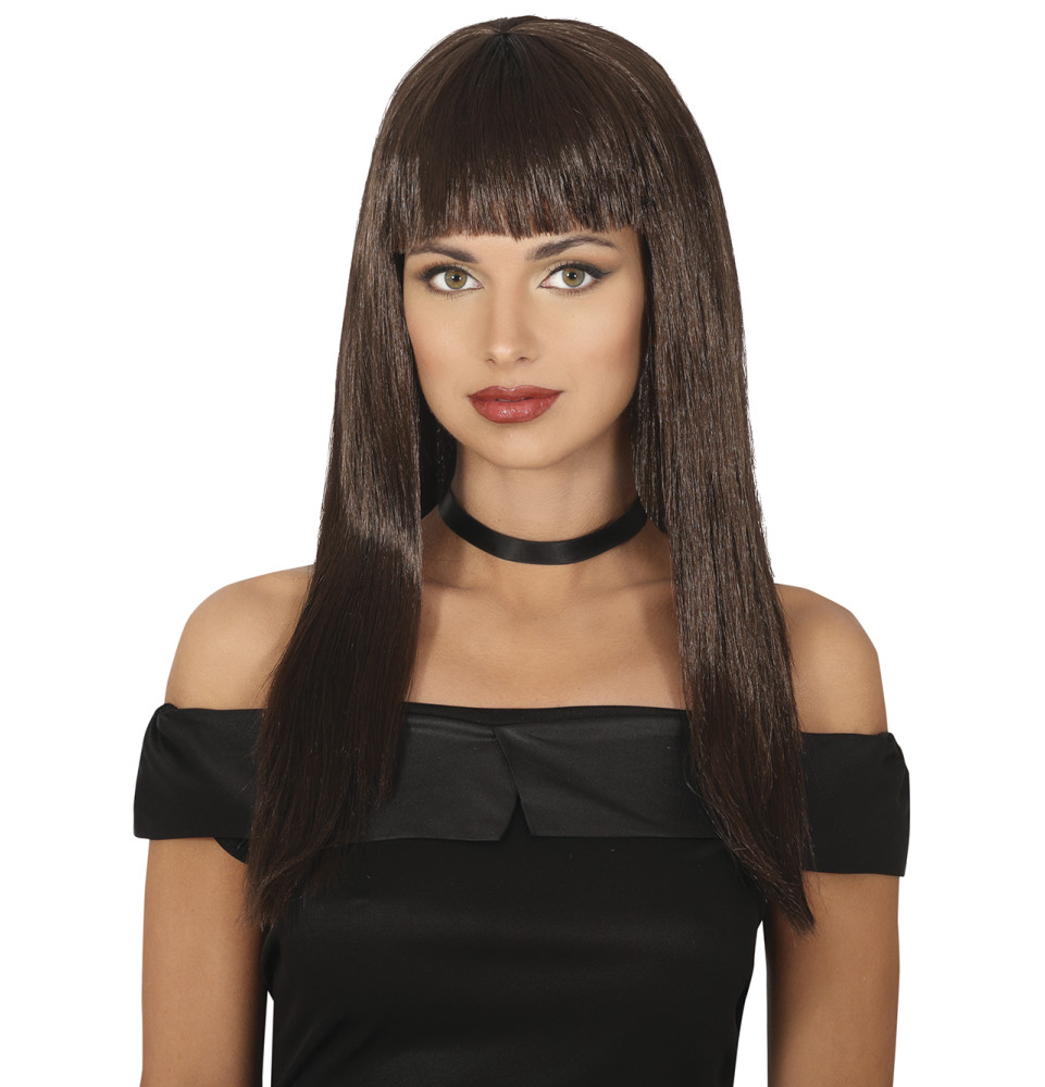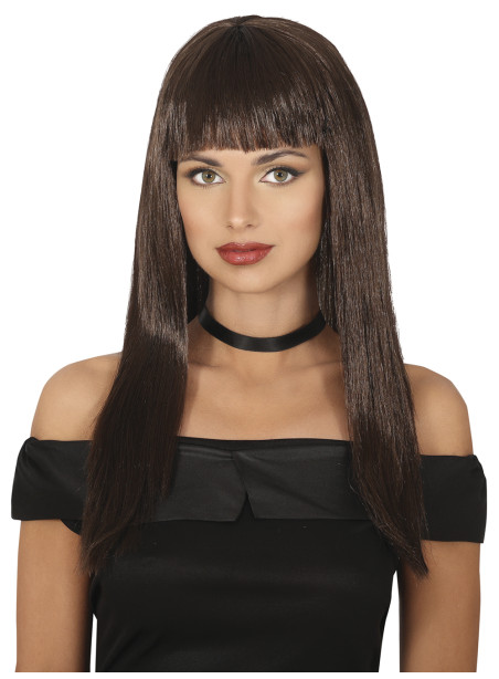 Perruque cheveux châtains longs avec frange