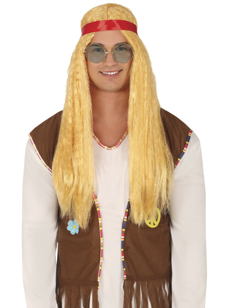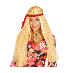 Perruque hippie cheveux longs blonds avec bandeau, idéale pour compléter un déguisements des années 70 !